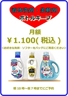 | 15分以内:1,000円 | 1バッグ:3.400円 (乾燥のみ:3.000円) |